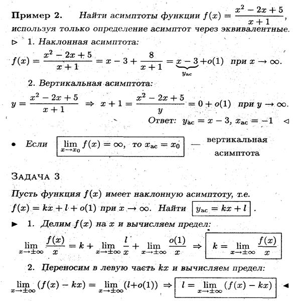 * Асимптотой называется линейная функция, эквивалентная заданной функции в бесконечно удалённой точке.