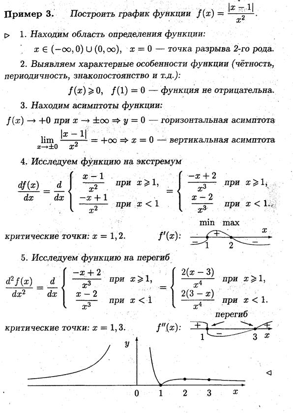• При построении графика функции находят её область определения, асимптоты, исследуют на экстремум и перегиб.