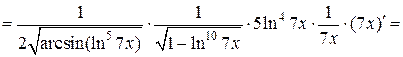 в) Применяя последовательно правило дифференцирования сложной функции (формула 6), получим: