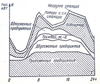 Рисунок 13.1-Структура суммарного зимнего суточного графика электрической нагрузки.
