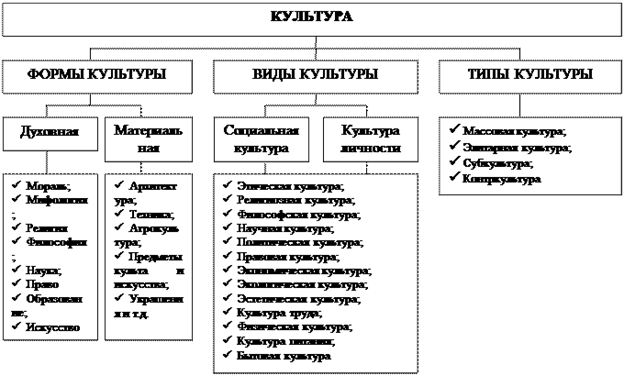 Наряду с формами культуры социологи выделяют разновидности культуры: доминирующая культура, субкультура и контркультура.