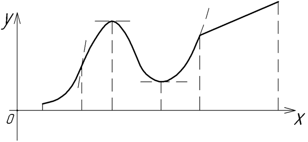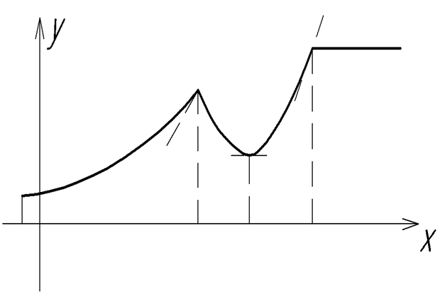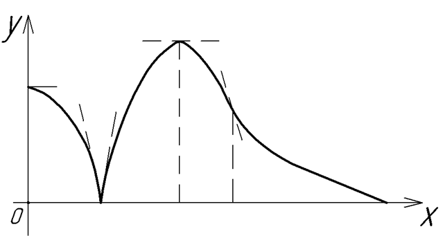 9. По графику функции построить эскизы графиков первой и второй производных.