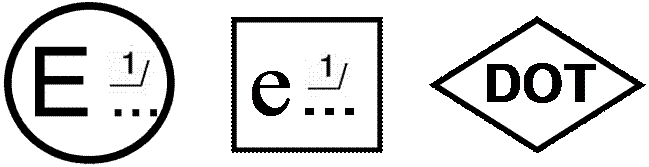 2.3.1.1. Иметь отформованную маркировку российским знаком соответствия либо хотя бы одним из знаков "Е", "е" или "DOT".