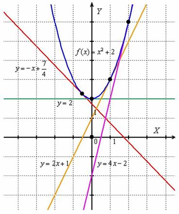 Факт тривиален, но озвучу: касательная к графику линейной функции в каждой точке совпадает с самим графиком данной линейной функции.