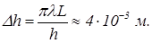 Решение. Поскольку по условию прямой и отраженный лучи частично перекрываются, значение h не может превышать 5 мм. Для оценки можно считать, что расстояние между темными полосами в интерференционной картине близко к значению перемещения Dh, при котором освещенность в выбранной точке от минимума переходит максимум и снова достигает минимума. Из уравнения