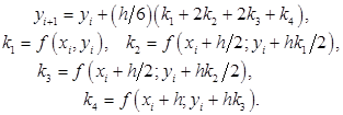 Для получения расчётных формул методом Рунге-Кутта достаточно в формулах (1) заменить