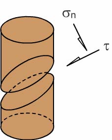 ) наступает разрушение образца по наклонной плоскости (рис. 4, 5). В отличие от испытаний на прямой срез, где плоскость среза определена конструктивно (горизонтальна) в приборе трехосного сжатия положение плоскости разрушения зависит от условий нагружения.