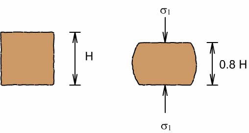 плоскости разрушения, так как в образце не образуется видимой плоскости разрушения, образец деформируется виде «бочки» (рис. 6). В этом случае, за разрушающую нагрузку принимается значение, соответствующее 20% вертикальной деформации.