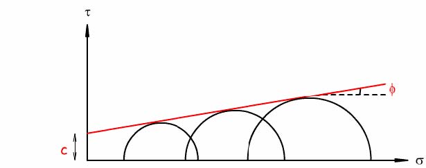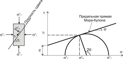 Рис. 7. Круг напряжений Мора и предельная прямая Мора-Кулона