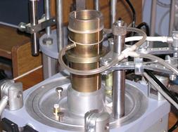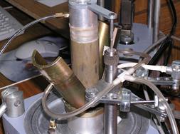 Испытание начинается с бокового обжатия образца. Заметим, что при боковом обжатии кран дренирования должен быть закрыт, а система заполнена водой.