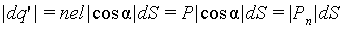 | P 1·Δ S cos (P1,n1) = - P 1 n ; | P 2·Δ S cos (P2,n2)= P 2 n , |