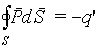 Таким образом алгебраическая величина нескомпенсированного заряда внутри объема V равна dq' = -Pn dS = - P d S. Тогда поток вектора P через поверхность S, ограничивающую объем V,связан с полным связанным зарядом q ' в объеме соотношением