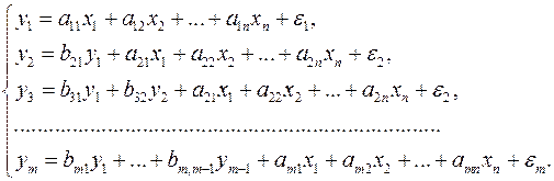 Наибольшее распространение в эконометрических исследованиях получила система взаимозависимых уравнений. В ней одни и те же зависимые переменные в одних уравнениях входят в левую часть, а в других уравнениях – в правую часть системы: