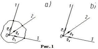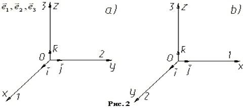 Пространство трехмерное, поэтому систему координат образуют три оси 1,2,3 со своими единичными векторами