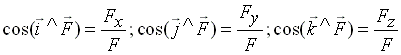 В выражении (2) представлены косинусы углов между осями координат и силой, которые называются направляющими косинусами и определяют направление силы в пространстве.