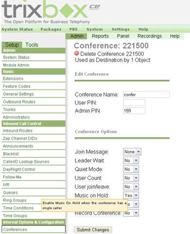 4. Затем предлагается установить несколько дополнительных услуг, например, «music on hold», то есть музыка ожидания в конференц- связи;