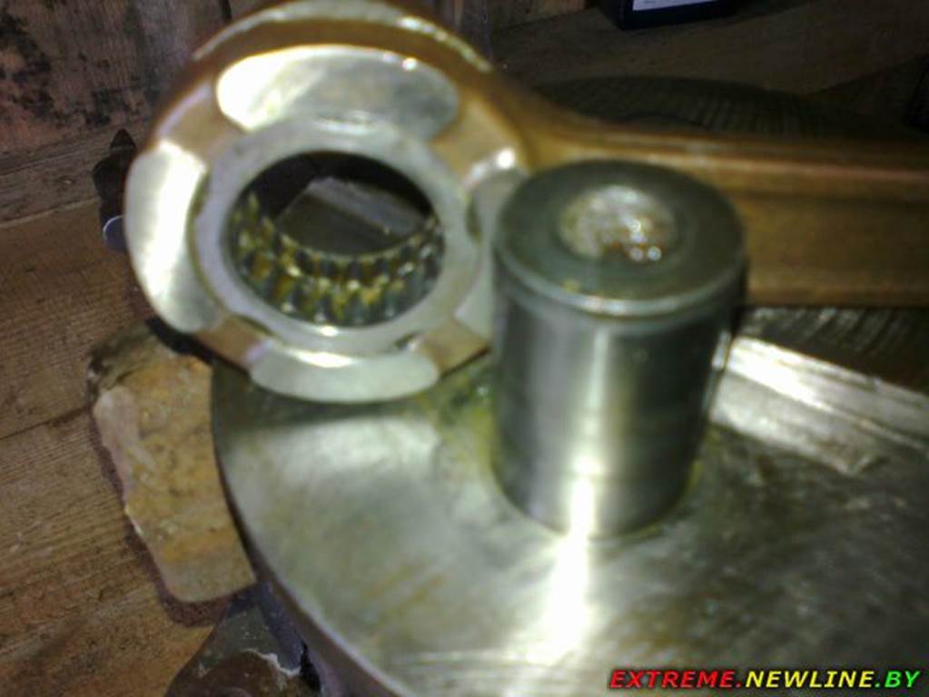Основная доработка коснулась в основном ЦПГ и замены шатуна КВ + установка карбюратора от Ява 638.Ийков 2928СЕ.На Коленчатый вал был установлен новый шатун под сипораторные подшипники,продавался он зеленой упаковке вроде как индийский а там Х.З.В нижний палец КВ вместо сипоратора были вставлены в два ряда ролики,в ВГШ 25 иголок росыпью от двух комплектов сипораторных подшипников.по бокам иголок на пальце были установлены дистанционые шайбы.