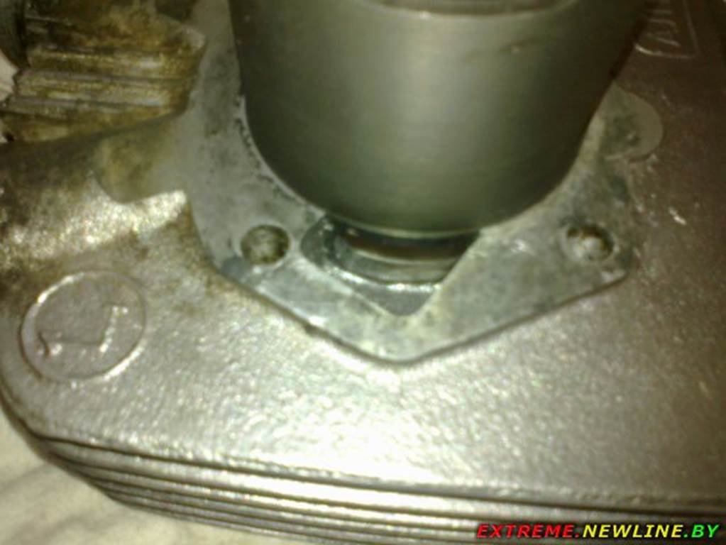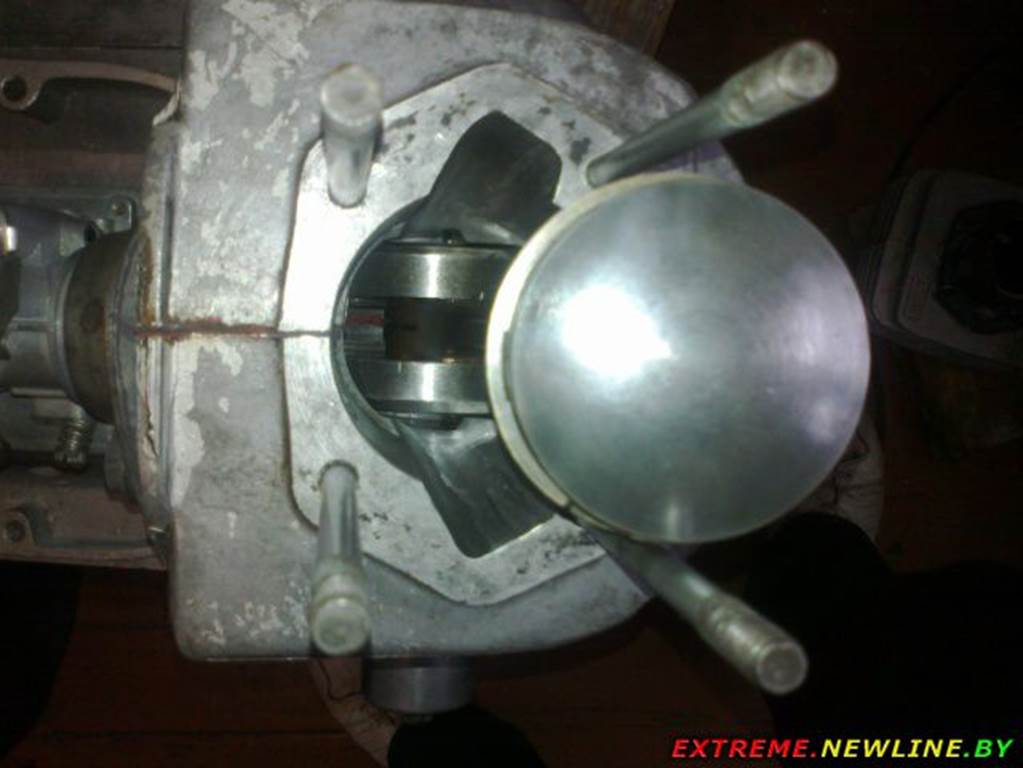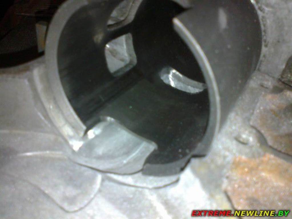 Цилиндр новодельный, поршень старых запасов С цилиндром конечно пришлось повозиться! Во первых гильза просажена до этого ездил на нем два сезона, постояно там фигачили газы, прогорала тонкая алюминиевая прокладка. Пришлось вырубать толстое 2мм алюминивое кольцо-прокладку, теперь головка садиться четко и плотно. Потом очень сильно не совпадали продувычные, впускные и выпускные окна.