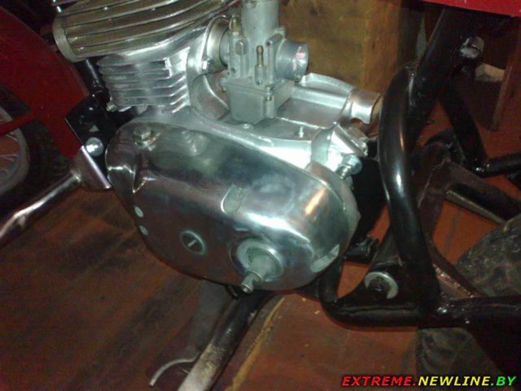 Ну и само собой на весь двигатель были истановлены новые подшипники, сальники, новые диски сцепления и новая моторка. Движок покрашен и отполирован.