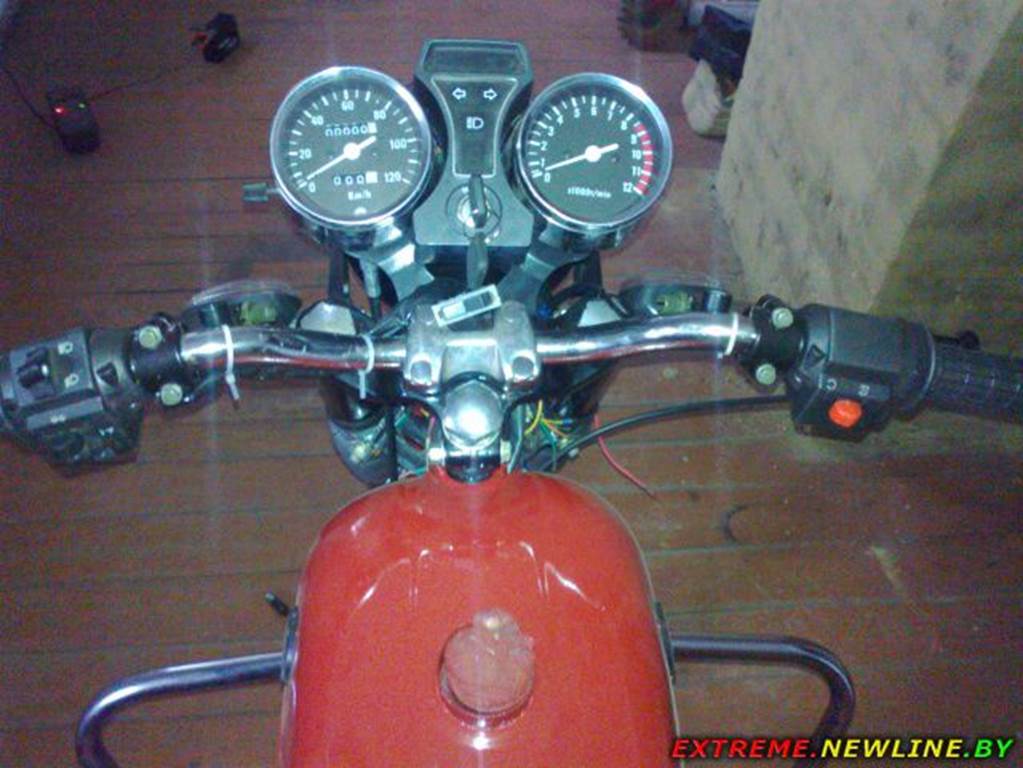 Тюнинг коснулся и внешнего вида мотоцикла. Покраска, установка новой электропроводки, приспособлен аккумулятор, установлены новые явовские пульты, ручки, приборка, дуги, рычаги, трубы, амортизаторы, ну и так, по мелочам:)