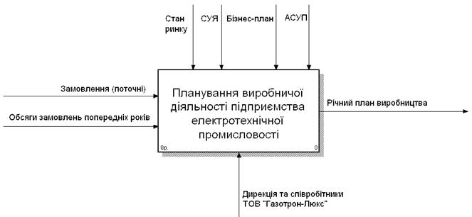 Розгорнута SADT модель процесу планування виробничої діяльності підприємства ТОВ „Газотрон-Люкс” зображена на рис. 1.7.