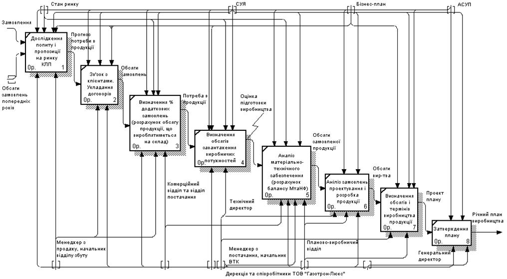 Рис. 1.7. Розгорнута SADT – модель процесу планування виробничої діяльності ТОВ "Газотрон-Люкс " (як має бути)