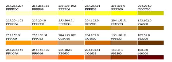 Цвет шрифта может быть разного цвета, он зависит от палитры, которую вы можете посмотреть в Интернете по адресу – http://www.artlebedev.ru/tools/colors/.