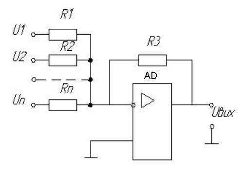 | інвертованого підсилювача; + інвертованого суматора; інтегруючий підсилювач; диференціюючий підсилювач; | |