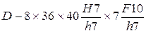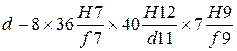 Условные обозначения шлицевых соединений, вала и втулки. Для шлицевого соединения с параметрами