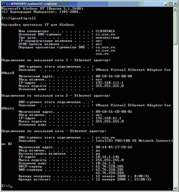 Команда ipconfig/all - отображает полную информацию по всем сетевым адаптерам.