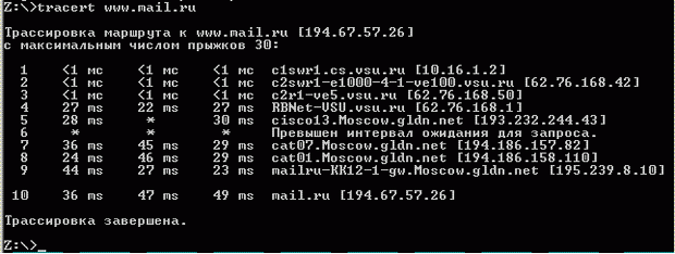 Traceroute (сокращенно tracert) — это служебная программа, предназначенная для определения маршрутов следования пакетов в сетях TCP/IP. Работа traceroute основана на протоколе ICMP.