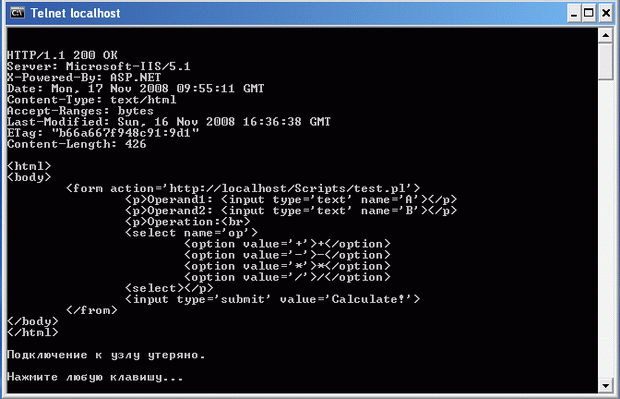 4. GET HTTP://LOCALHOST/PERLCALC.HTML HTTP/1.0 <ENTER><ENTER>