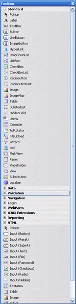 - Серверные элементы управления для проверки данных (валидации) – применяются для валидации входных данных от клиентского приложения (обычно веб-браузера).