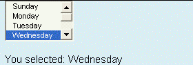 protected void Page_Load(object sender, EventArgs e) { Label1.Text = "You selected: " + Label1.Text; } protected void LBSelChanged(object sender, System.EventArgs e) { if (LstBx.SelectedItem!= null) Label1.Text = "You selected: " + LstBx.SelectedItem.Value; else Label1.Text = "You selected: "; } }то при запуске проекта после выбора пользователем элемента из списка можно будет увидеть в окне браузера: