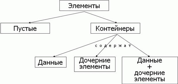 | Другие элементы | <!ELEMENT имя (дочерний элемент 1, дочерний элемент 2)> | Содержит только дочерние элементы |