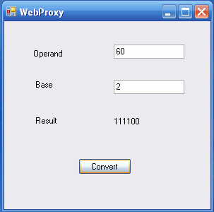 - Проверка работы программы. На скриншоте ниже показана работа программы WebProxy (совместно с веб-службой ASPNETCalcWebService):