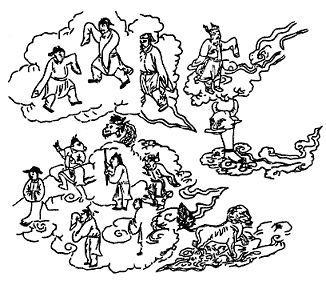 В темноте Ван Липин услышал какой-то шорох, и к нему постепенно вернулось ощущение его тела, Он медленно открыл глаза, увидел тусклый огонек лампадки и учителей, неподвижно сидевших рядом, холодный блеск мечей... Он был у себя в кузнице. Словно во сне, он поднялся, посмотрел вокруг...
