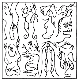 Ван Липин в годы своего учения трижды принимал особые пилюли. О том, как это произошло в первый раз, уже говорилось выше. Второй раз он принял снадобье для того, чтобы на его теле проявились энергетические каналы и «линии внутреннего достижения». Тогда ему пришлось долго сидеть в большом чане с горячей водой, выводя наружу следы каналов. Надо сказать, что эти «линии внутреннего достижения» — вещь еще более загадочная, чем энергетические каналы. Они играют особенно важную роль в даосском совершенствовании. Эти линии показаны на помещенном здесь рисунке. Всего их насчитывается шесть.