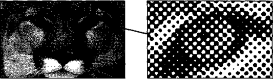 Если рассмотреть с помощью увеличительного стекла черно-белое графическое изображение, напечатанное в газете или книге, то можно увидеть, что оно состоит из мельчайших точек, образующих характерный узор, называемый растром (рис. 1.3).