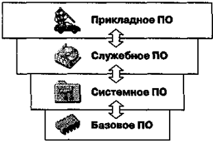 Базовый уровень. Самый низкий уровень программного обеспечения представляет базовое программное обеспечение. Оно отвечает за взаимодействие с базовыми аппаратными средствами. Как правило, базовые программные средства непосредственно входят в состав базового оборудования и хранятся в специальных микросхемах а, называемых постоянными запоминающими устройствами (ПЗУ— Read Only Memory, ROM). Программы и данные записываются («прошиваются») в микросхемы ПЗУ на этапе производства и не могут быть изменены в процессе эксплуатации.