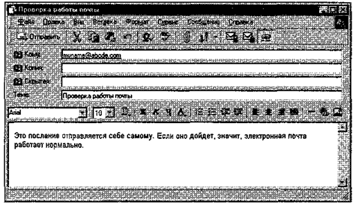 В ходе создания и редактирования сообщения наличие связи с почтовым сервером не требуется. Такая связь нужна только в момент отправки (получения) сообщений. Программа Outlook Express устроена таким образом, что отправка и получение сообщений осуществляются одновременно. Так, получение и доставка почты осуществляются по щелчку на кнопке Отправить в окне создания сообщения или по щелчку на кнопке Доставить в основном окне программы Outlook Express.
