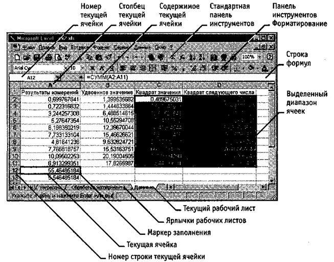Рис. 12.2. Рабочий лист электронной таблицы Excel