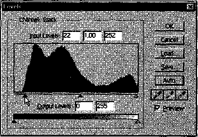 3. Расширьте динамический диапазон изображения. Для этого щелкните на кнопке Авто. Граничные движки уровней сместятся к центру — левый на уровень 22, правый на уровень 252. Снимок станет более контрастным.