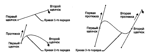 кривая третьего порядка — щелчок + протягивание + щелчок +протягивание.