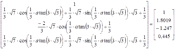 Программа MathCad выдаст вектор, элементами которого являются корни данного уравнения.