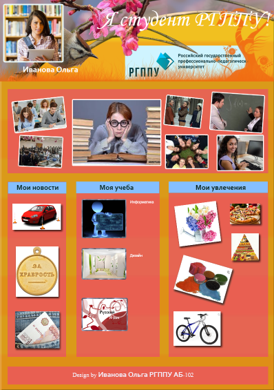 Средствами Adobe Photoshop создать дизайн личной страницы студента РГППУ.