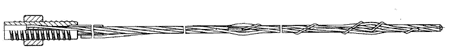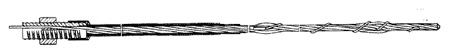 Верхняя часть стержня закрепляется ампульным способом в шпуре диаметром 30мм. Нижняя часть в шпуре диаметром 43мм. В этой части шпура канат охватывает трубка с герметизаторм.