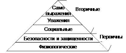 По теории Маслоу все потребности можно расположить в виде строгой иерархической структуры, показанной на рисунке 3.8.