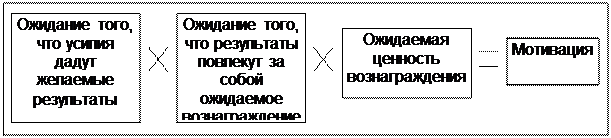 1)Теория ожиданий (рисунок 3.9) базируется на положении о том, что наличие активной потребности не является единственным необходимым условием мотивации человека на достижение определенной цели. Человек должен также надеяться на то, что выбранный им тип поведения приведет к удовлетворению или приобретению желаемого. Ожидания можно рассматривать как оценку данной личностью вероятности определенного события. При анализе мотивации к труду теория ожидания подчеркивает важность трех взаимосвязей: затраты труда - результаты; результаты - вознаграждение и валентность (ценность вознаграждения). Ожидания в отношении затрат труда - результатов - это отношение между затраченными усилиями и полученными результатами. Ожидания в отношении результатов - вознаграждений есть ожидания определенного вознаграждения или поощрения в ответ на достигнутый уровень результатов. Валентность - это предполагаемая степень относительного удовлетворения или неудовлетворения, возникающая вследствие получения определенного вознаграждения. Поскольку у различных людей потребности и пожелания в отношении вознаграждения различаются, то конкретное вознаграждение, предлагаемое в ответ на достигнутые результаты, может и не иметь для них никакой ценности.