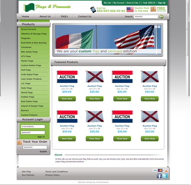 На данном сайте будет находиться контент компании Flags & Pennants, содержащий текстовую информацию и графические изображения о товарах, которые реализует и популяризирует данная компания.
